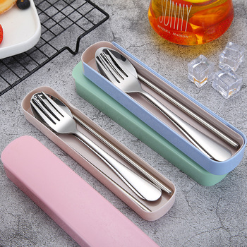 3ピースステンレス製ポータブル食器セットミラー金属スプーン学生屋外用